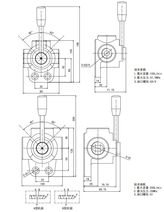 RV列液壓轉(zhuǎn)閥是由閥體、內(nèi)部閥芯和手柄桿組成。轉(zhuǎn)閥有3通,4通,6通,8通,可以根據(jù)客戶需要定制,同時有中位開啟和關(guān)閉兩種不同的閥芯機能,流量從60LPM到200LPM,RV系列液壓轉(zhuǎn)閥可以實現(xiàn)快速正確的切換油缸和馬達之間的油路??蛻艨梢赃x擇3通油路,可以從A切換到B或者在中位回油箱。